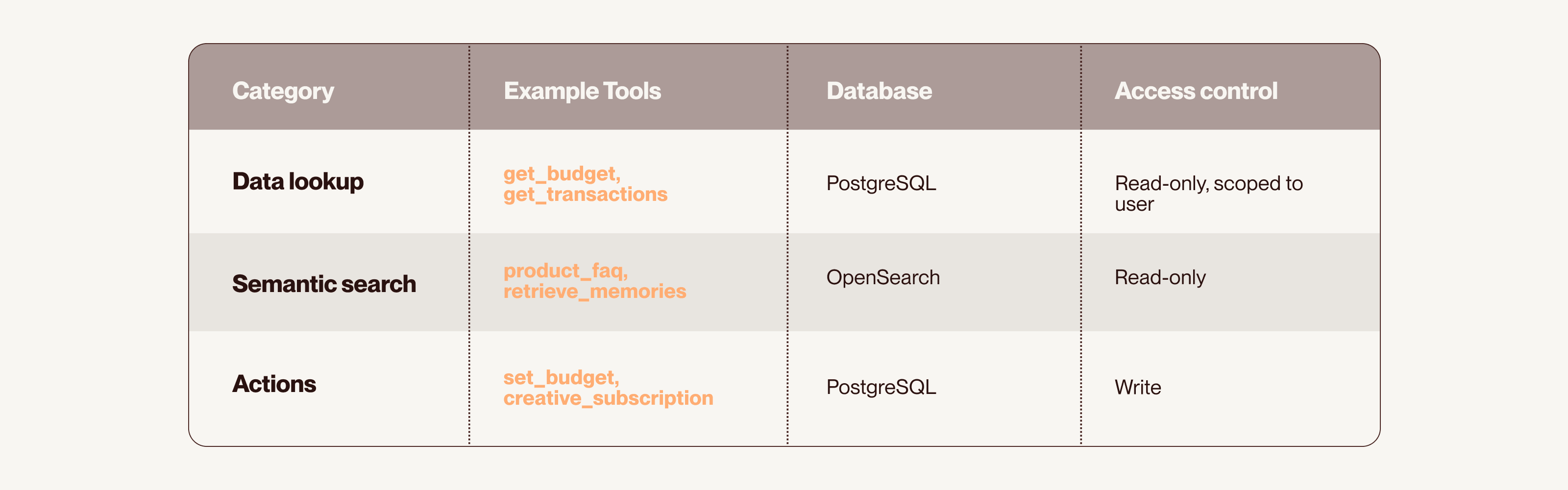 Broadly speaking, Cleo’s tools fall into two categories: retrieval and action. Retrieval tools help her answer questions by pulling data from databases or searching internal knowledge bases. For example, if you ask how much you have left to spend, Cleo looks up your budget in real time.