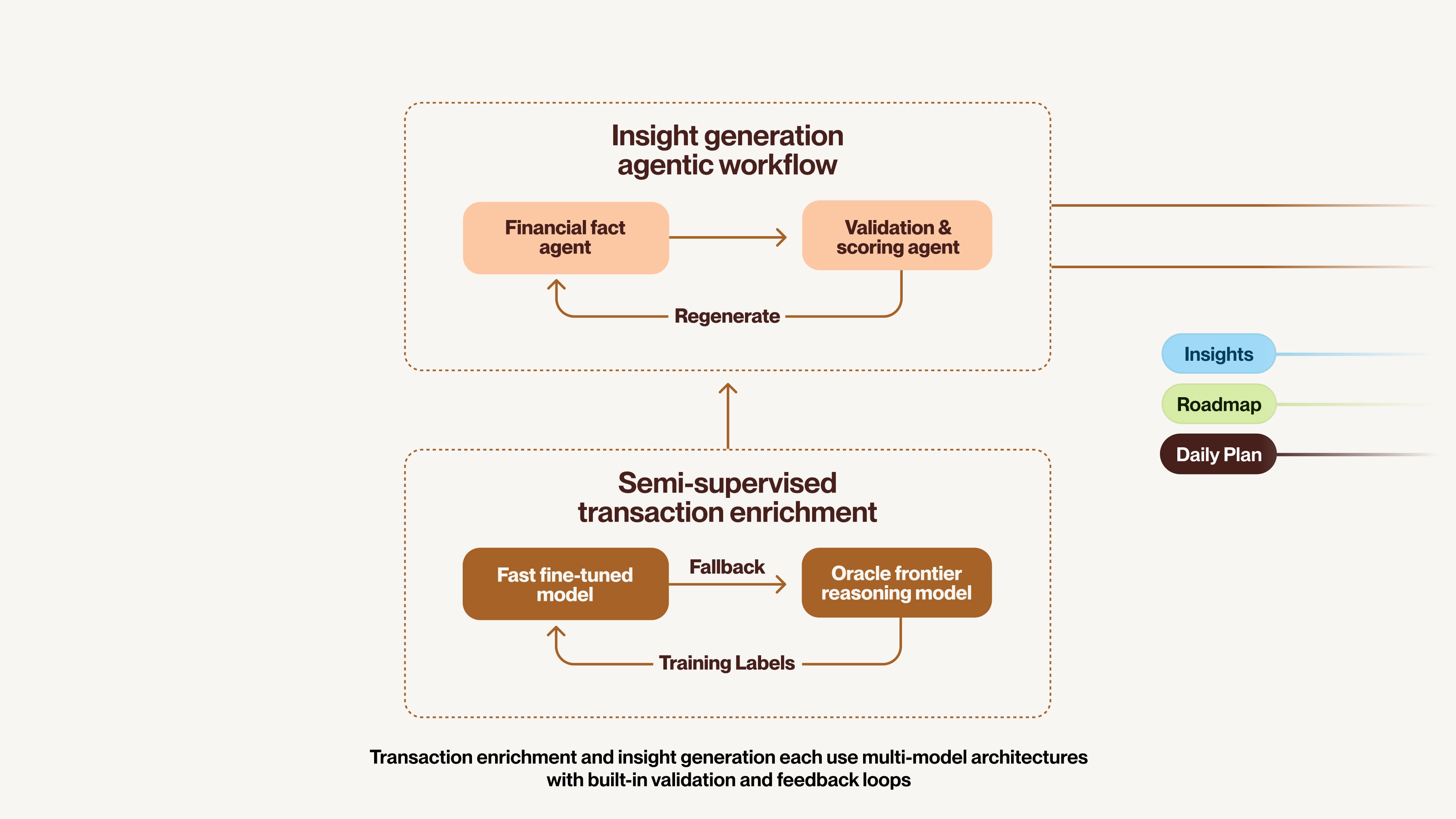 Financial guidance naturally decomposes into distinct tasks, such as transaction understanding, long-term planning, daily prioritization, and action execution. Each has different latency, reliability, and context requirements.